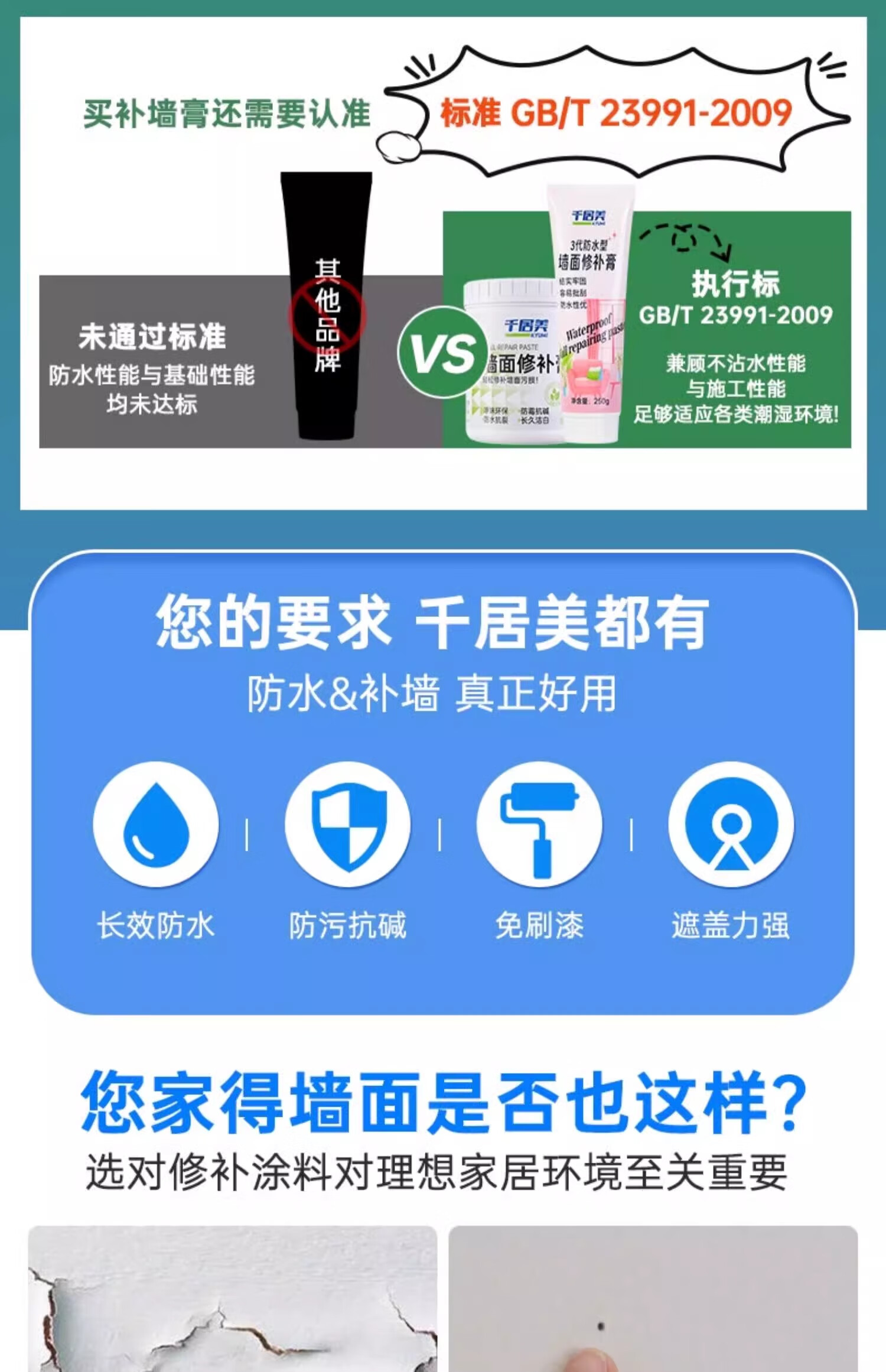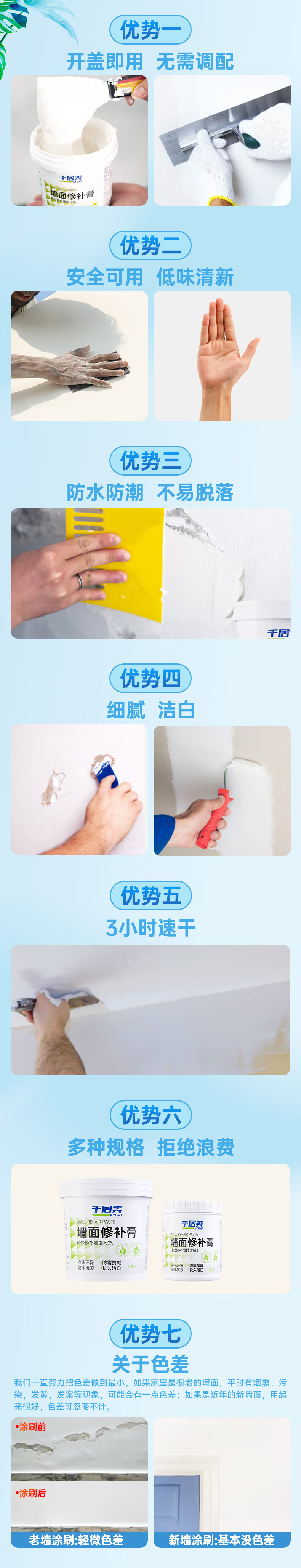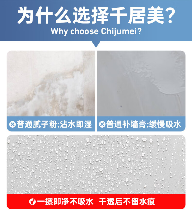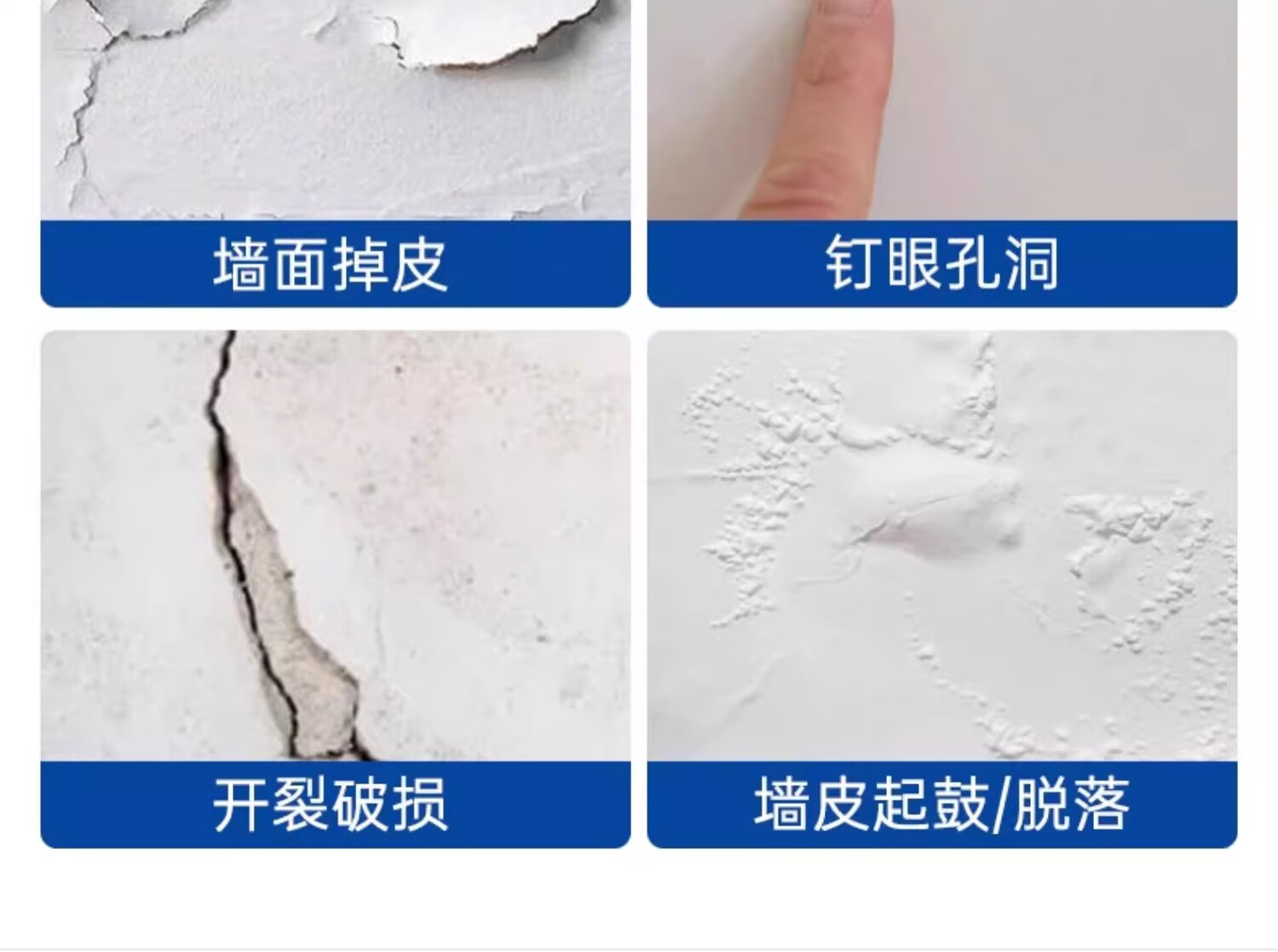 适用于钉眼,裂缝,墙面污渍等墙面修补