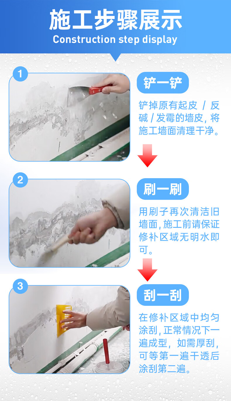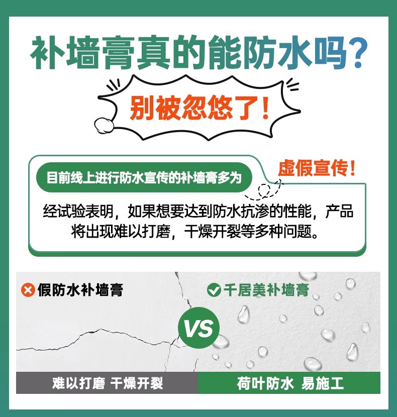 补墙膏 防水墙面修补膏腻子粉白色墙体裂缝掉皮划痕修复膏