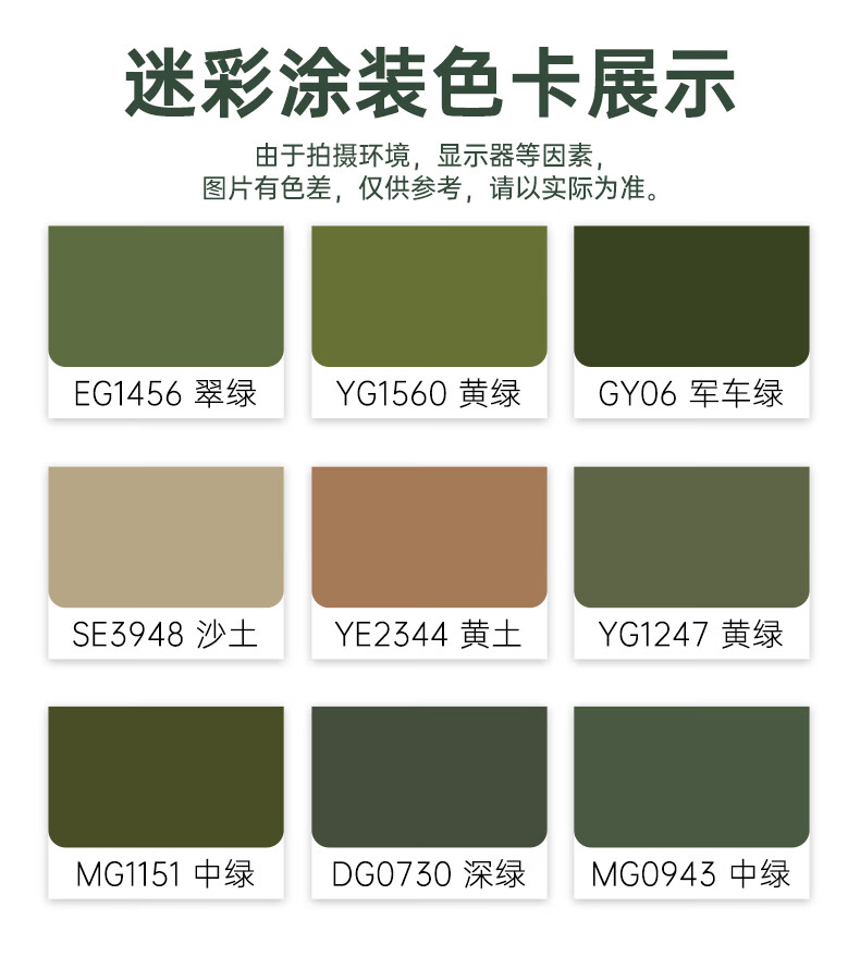 适用于车辆迷彩涂装,输送管道,设备防锈修补,真人CS,集装箱,外墙迷彩等涂装