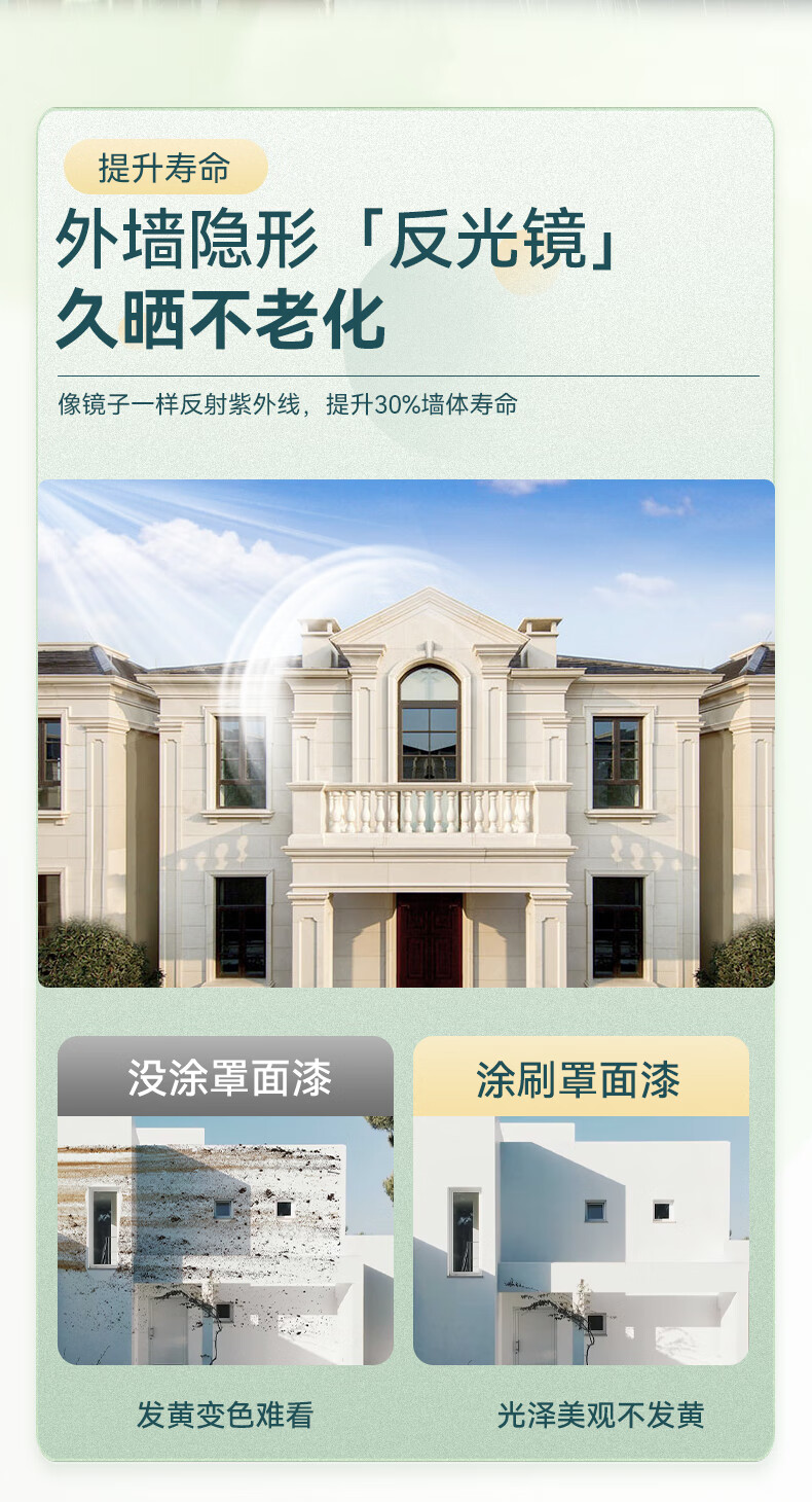 抗污自洁,防水耐晒,保色持久,防晒抗老,防粉尘,耐冲刷